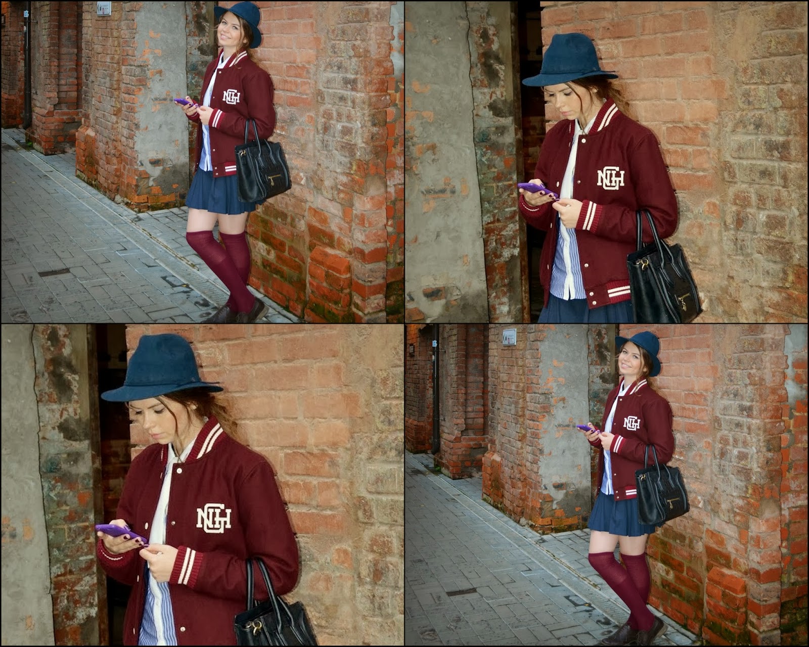 Осенью меня все больше тянет на стиль преппи (preppy): юбки в складку, рубашки, пиджаки и галстуки. Я накупила рубашек с белыми воротничками, "школьных" юбок и носила их с беретами и пиджаками, но "финалом" стала эта невероятно стильная куртка bomber jacket Gant.